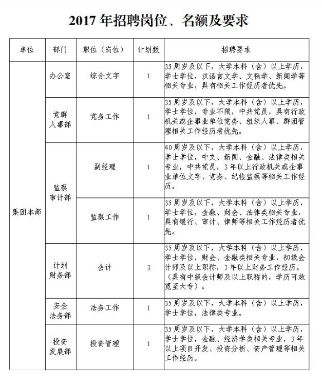招聘职位及要求